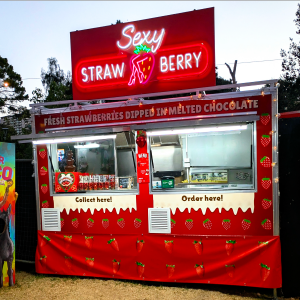 Bring indulgence to your event with Sexy Strawberry—our dessert truck that turns heads. We serve juicy strawberries dipped in milk or white chocolate, topped with everything from Oreos to crushed nuts. As part of our food truck catering Australia service, this crowd-pleasing sweet station adds flair and fun to birthdays, weddings, and corporate events.